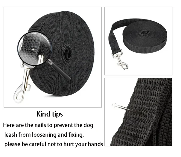 The nylon long dog training leash offers a versatile length range of 1.5M-30M, perfect for various training scenarios and dog sizes.