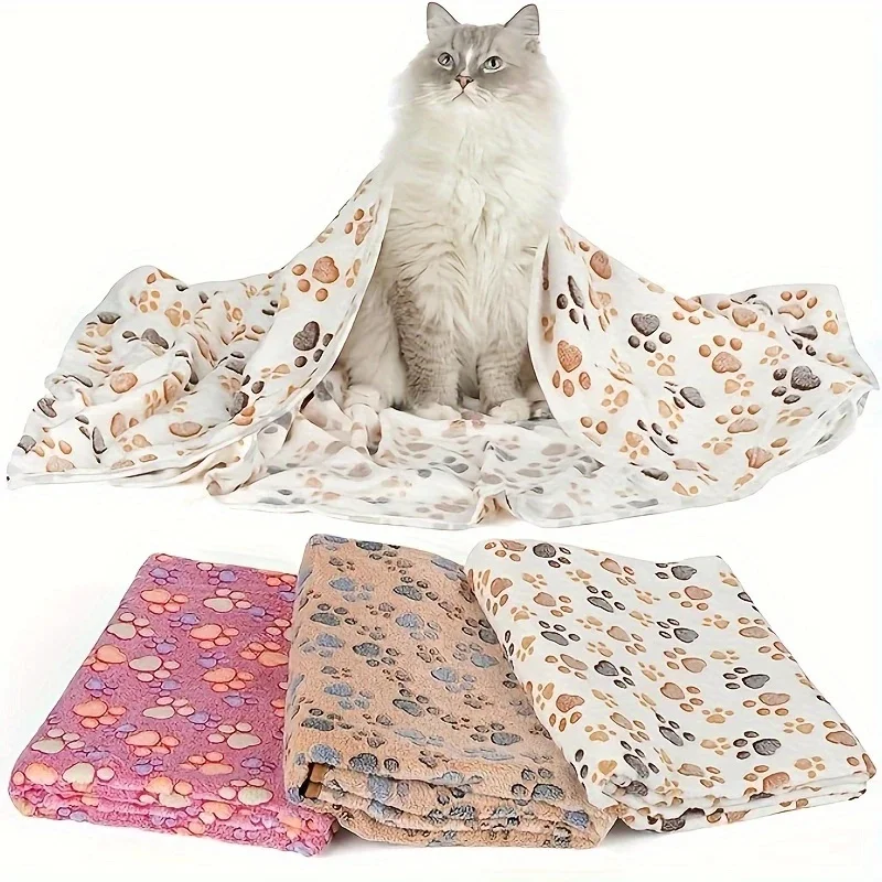 Soft Flannel Fleece Cat Dog Blanket Bed Mats Paw Foot Print Warm Pet Blanket Sleeping Beds Cover Mat For Dogs Cats Pets supplies